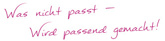 Schön, dass Sie meine Internetseite besuchen. Mein Änderungsatelier ist die Erfüllung meines Lebenstraumes, Beruf und Hobby zugleich.